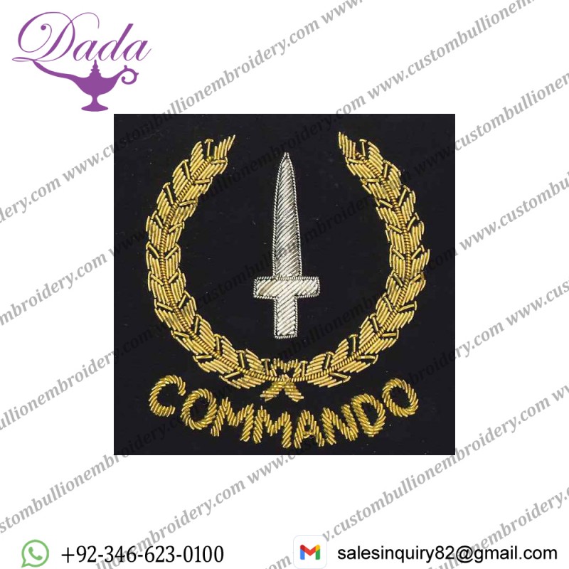 Army Commando Wire Blazer Badge Are The Ultimate Emblems. At Custom Bullion Embroidery, We Are Proud To Say Our Expert Craftsmen Make Each One Individually. We Combine Gold and Silver Bullion wire Thread With Hand-stitched Embroidery to Produce a Beautiful, Classic Look.