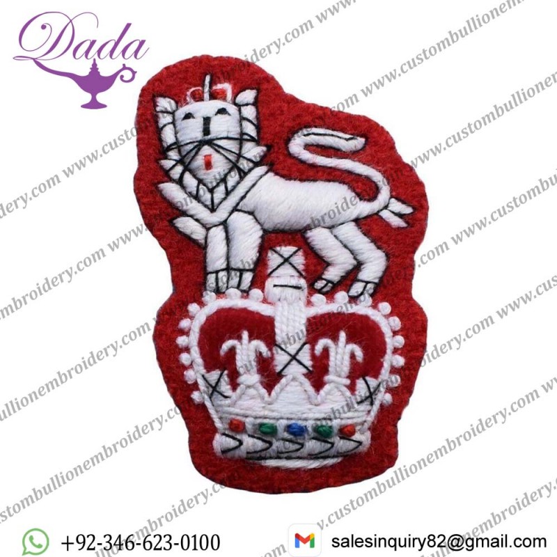 Badges Army Beret Badge white on Red Are The Ultimate Emblems. At Custom Bullion Embroidery, We Are Proud To Say Our Expert Craftsmen Make Each One Individually. We Combine Gold and Silver Bullion wire Thread With Hand-stitched Embroidery to Produce a Beautiful, Classic Look.