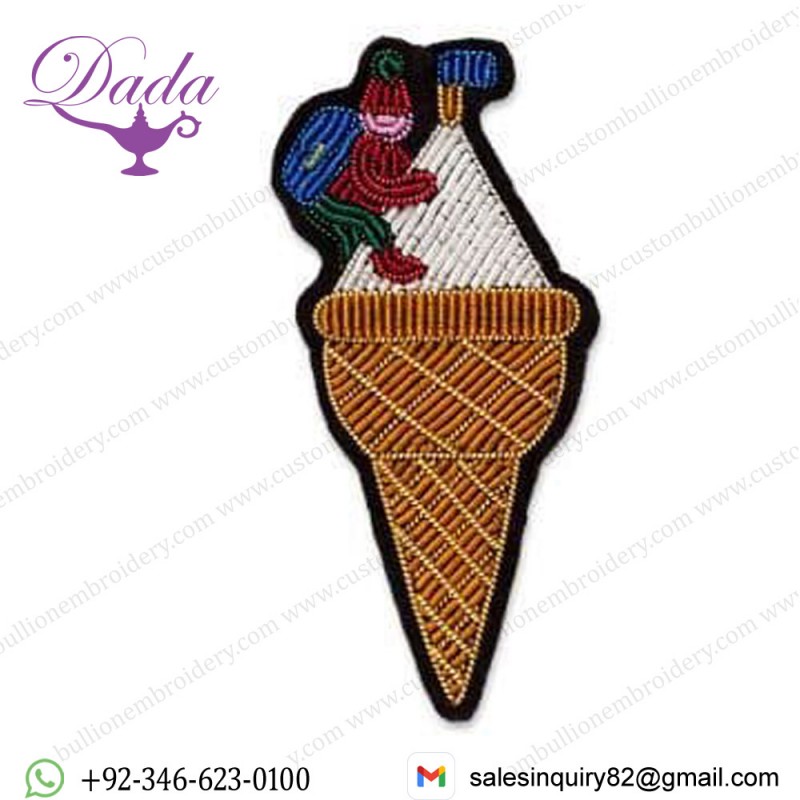 High Quality Custom Brooch Bullion Embroidery handmade embroidered patches...