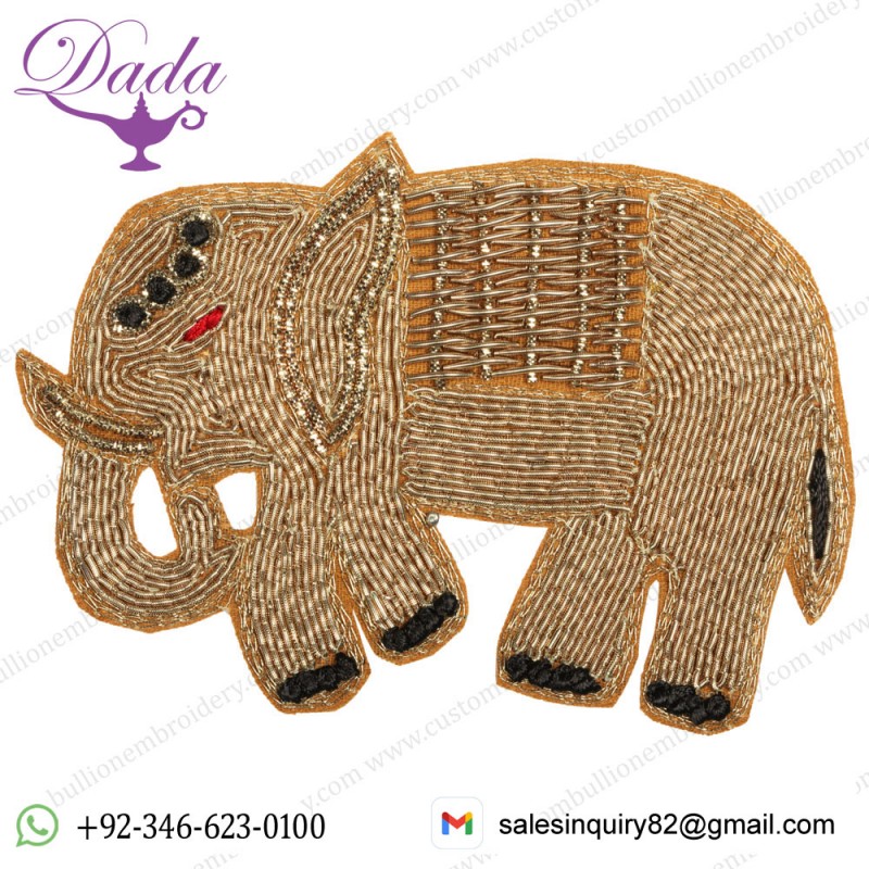 Champagne-Beige Embroidered Elephant Patch Hand...