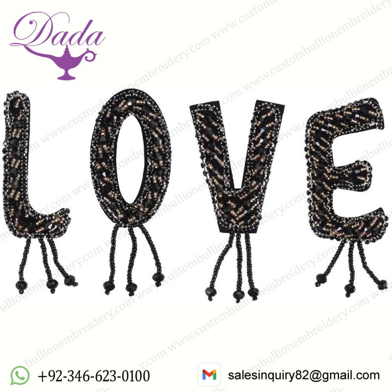 Beaded Letters Love Handmade Crystal Beading Fringe Patches for Clothes AppliqueUsage For garments, bags, home decoration,shoes, promotional, jacket,