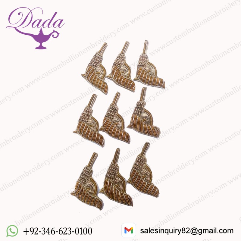 Hand embroidery gold wire patches brooch badges Custom Gold Bullion wire...