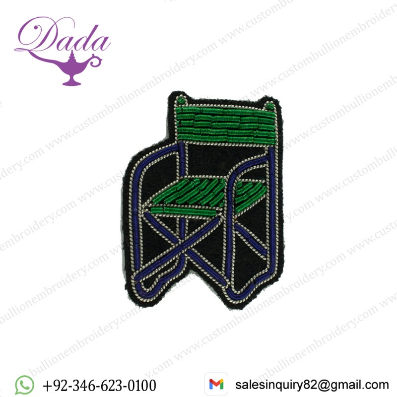 SAFARI CHAIR BROOCH hand embroidery china bullion wire Indian silk patch & lapel pin brooch also known as