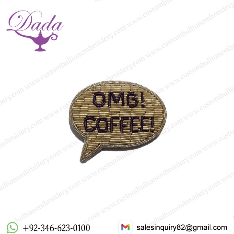 Hand embroidery gold wire patches brooch badges Custom Gold Bullion wire...