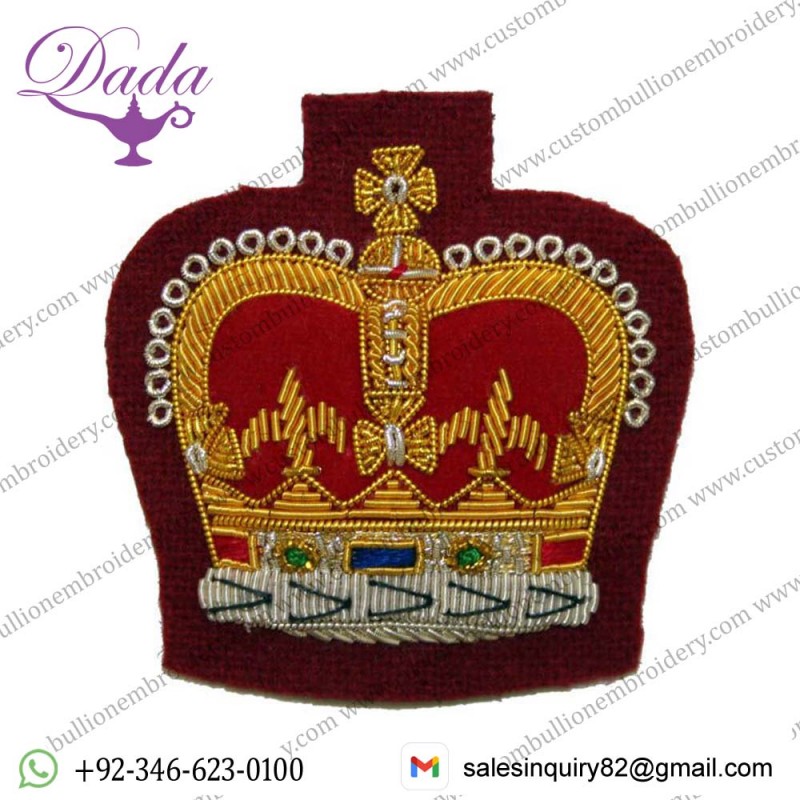 rown Officer Uniform Bullion Embroidery Badges, Crown Gold Bullion And Wire Crown Blazer Badge, army Uniform Accessories, Military uniform Accessories, Bespoke Uniform Accessories,