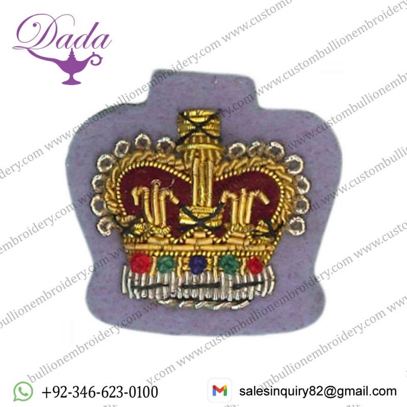 King Crown Badge Silver or Gold Bullion Hand Embroidered Crown Officer...