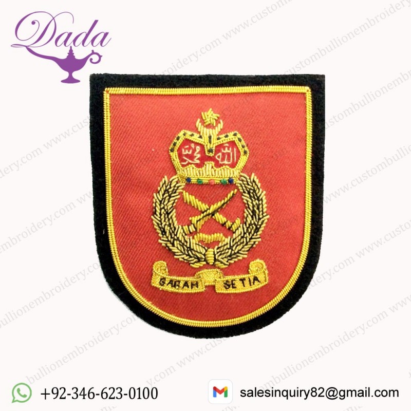 Handmade bullion blazer badges in Gold and Silver Malaysian Military Royal...