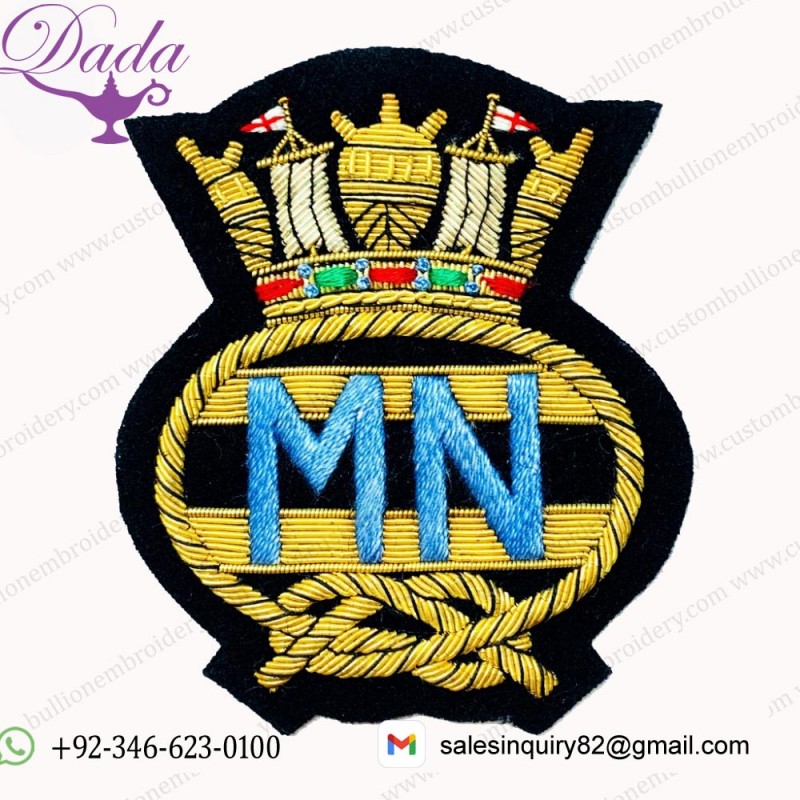 Merchant Navy Blazer Badge, Hand Embroidery Bullion Wire Merchant Navy Blazer Patch
